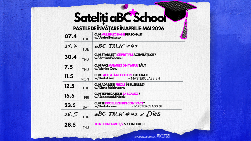 - Detalii despre curs + expert – more to come, follow us on -> @abc.school.ro